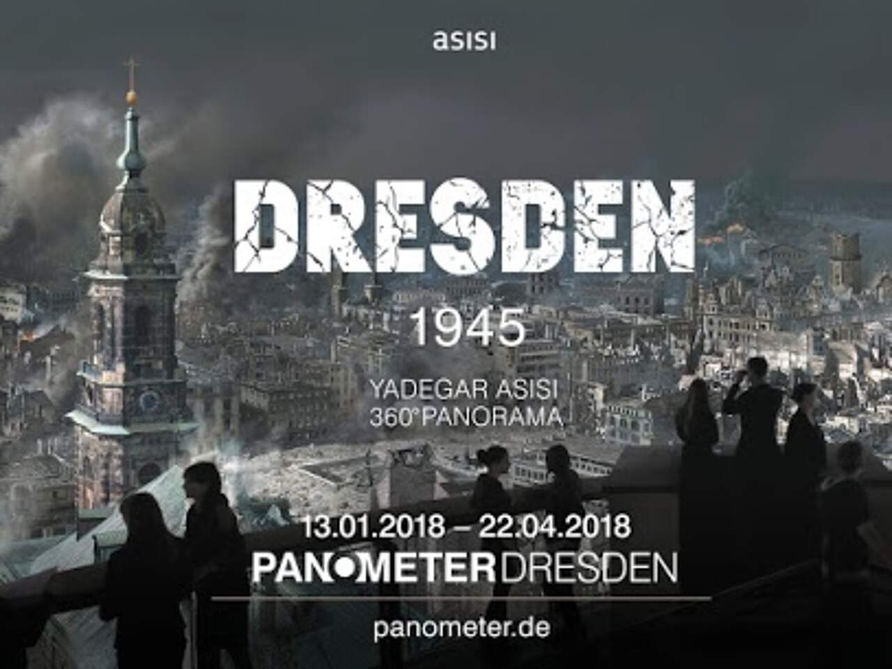 DRESDEN 1945 führt Sie im Maßstab 1:1 auf eine Zeitreise in die Elbmetropole unmittelbar nach den Bombardements von 1945. Der 15 Meter hohe Besucherturm ermöglicht Ihnen dabei einen Rundumblick vom Dresdner Rathausturm und lässt Sie so die Ausmaße der Zerstörung im knapp 3.000 Quadratmeter großen Panorama von Yadegar Asisi überblicken. Das Projekt thematisiert jedoch nicht allein die Tragödie Dresdens, sondern verweist mit Hilfe mehrerer Stelen auf die verschiedenen Wechselwirkungen in der kriegerischen europäischen Geschichte. So wurden 1945 neben zahlreichen deutschen Städten auch viele weitere europäische Städte wie Rotterdam, Coventry, Stalingrad oder Warschau zerstört.