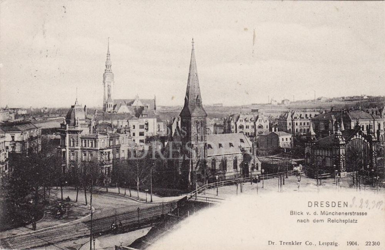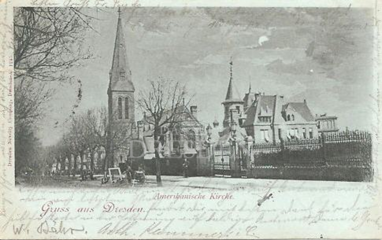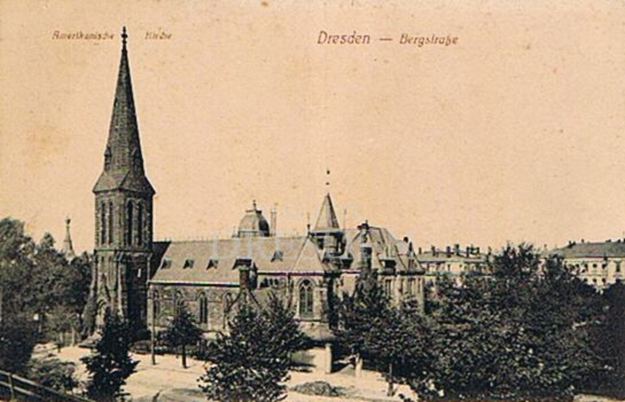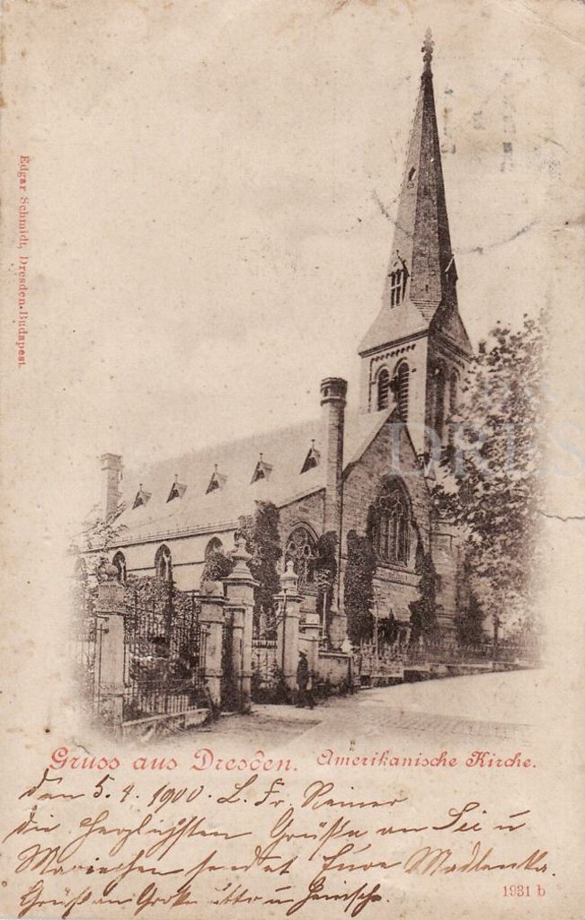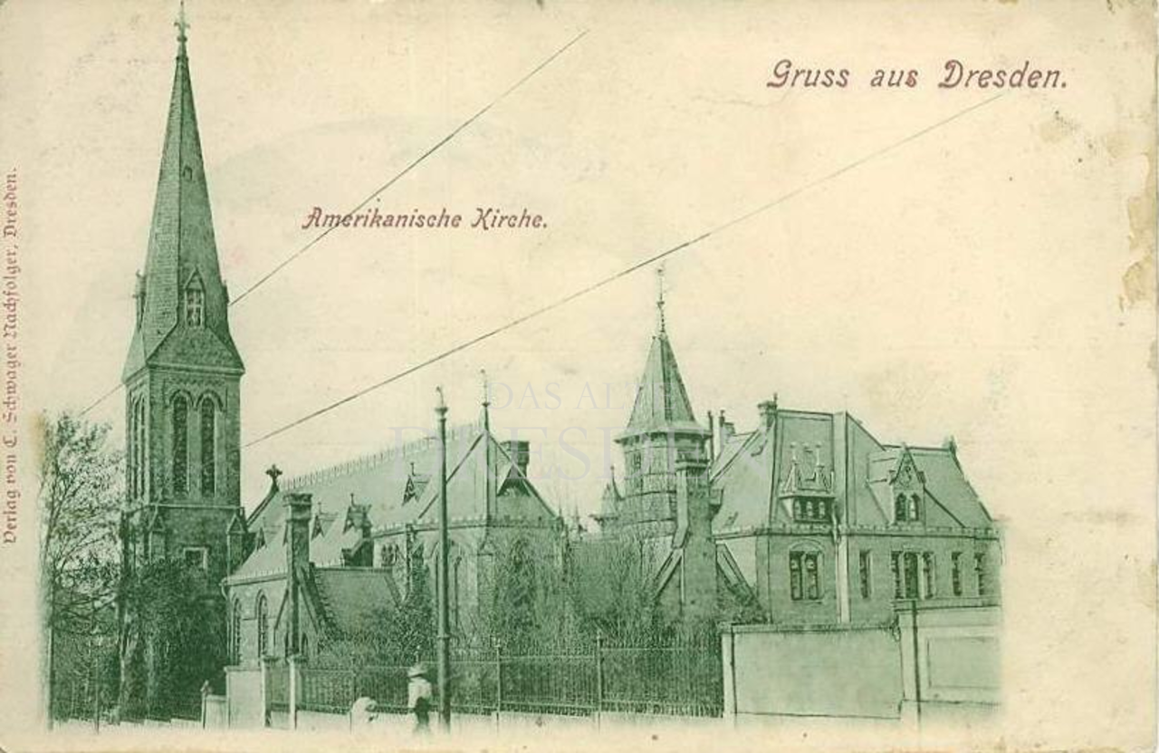 Dreischiffige Hallenkirche, 1883-1884 in neogotischem Stile im Ensemble mit dem Pfarrhaus von Architekt Dögel errichtet, Standort südlich des Hauptbahnhofes, Bau durch eine Stiftung der Amerikanerin Mrs. Thompson ermöglicht, "American Church of St. John" genannt, im Jahre 1900 ca. 200 Mitglieder, 1945 bei den Bombardements ausgebrannt, Turm völlig intakt