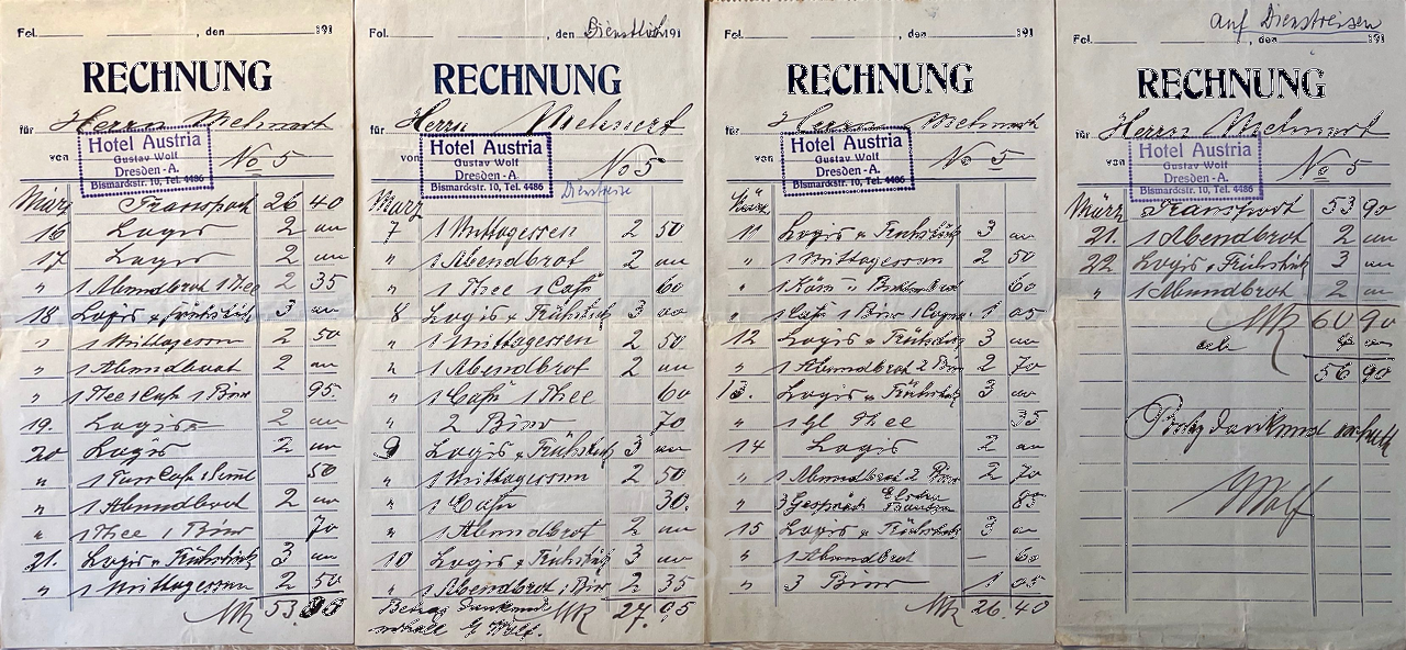 Frühstück 1 Mark, Mittagessen 2,50 Mark, Abendbrot 2 Mark, 1 Bier 35 Pfennige