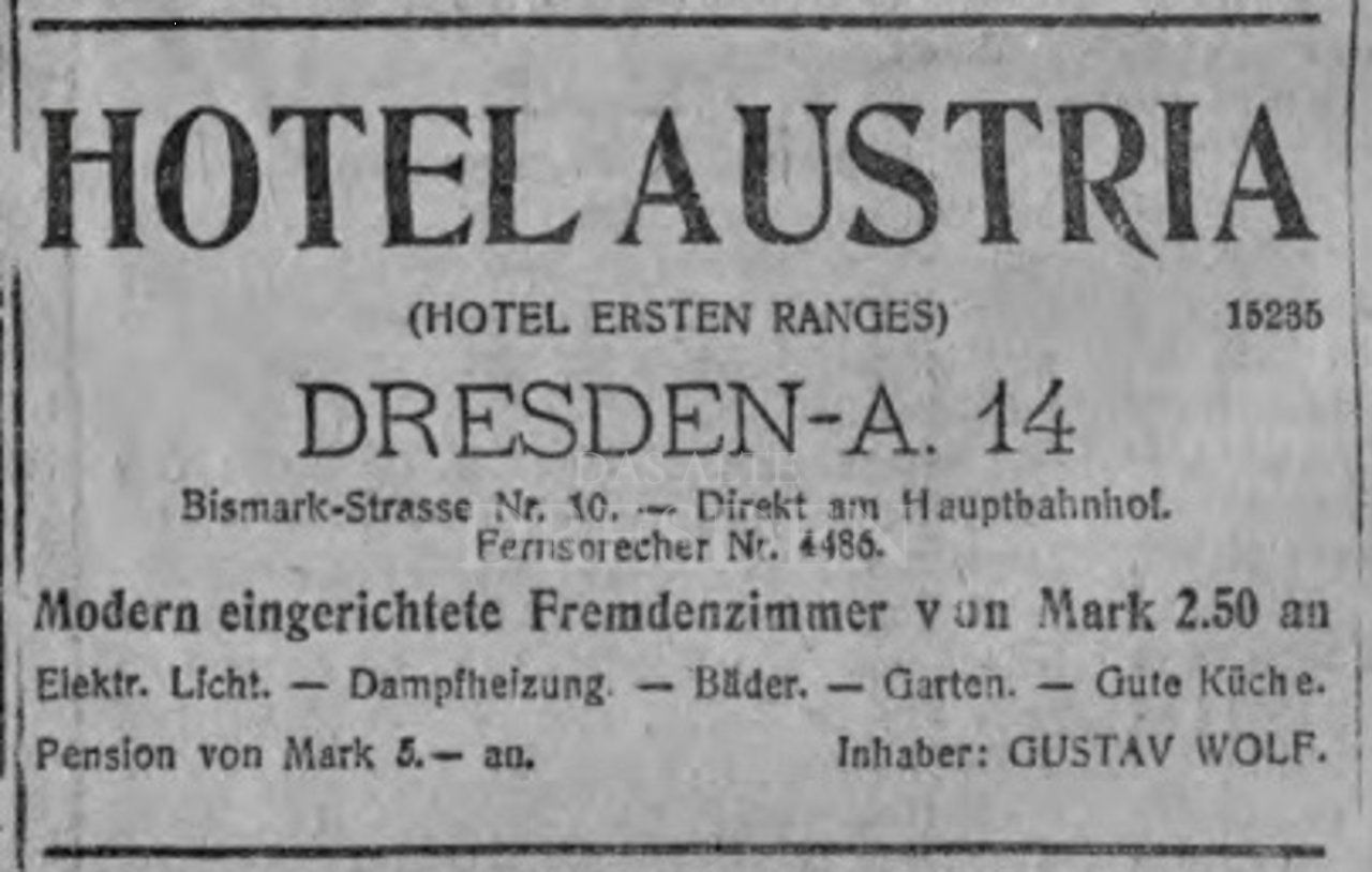 ab 1907 Gustav R. Wolf, Hotelier aus Leipzig