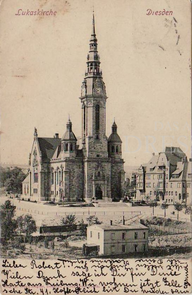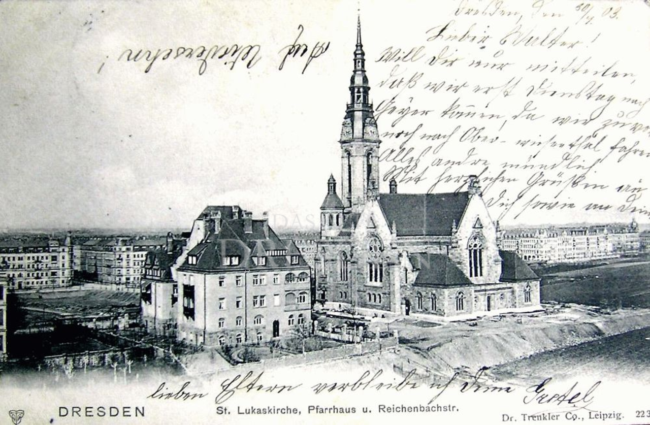Die Lukaskirche, benannt nach dem Evangelisten Lukas, entstand in den Jahren 1899 bis 1903 nach den Plänen des Leipziger Architekten Georg Weidenbach. Zwischen 1908 und 1933 wirkte hier der Hofprediger Johannes Kessler, der ehemals als Prinzenerzieher am Hof Kaiser Wilhelms II. gearbeitet hatte.