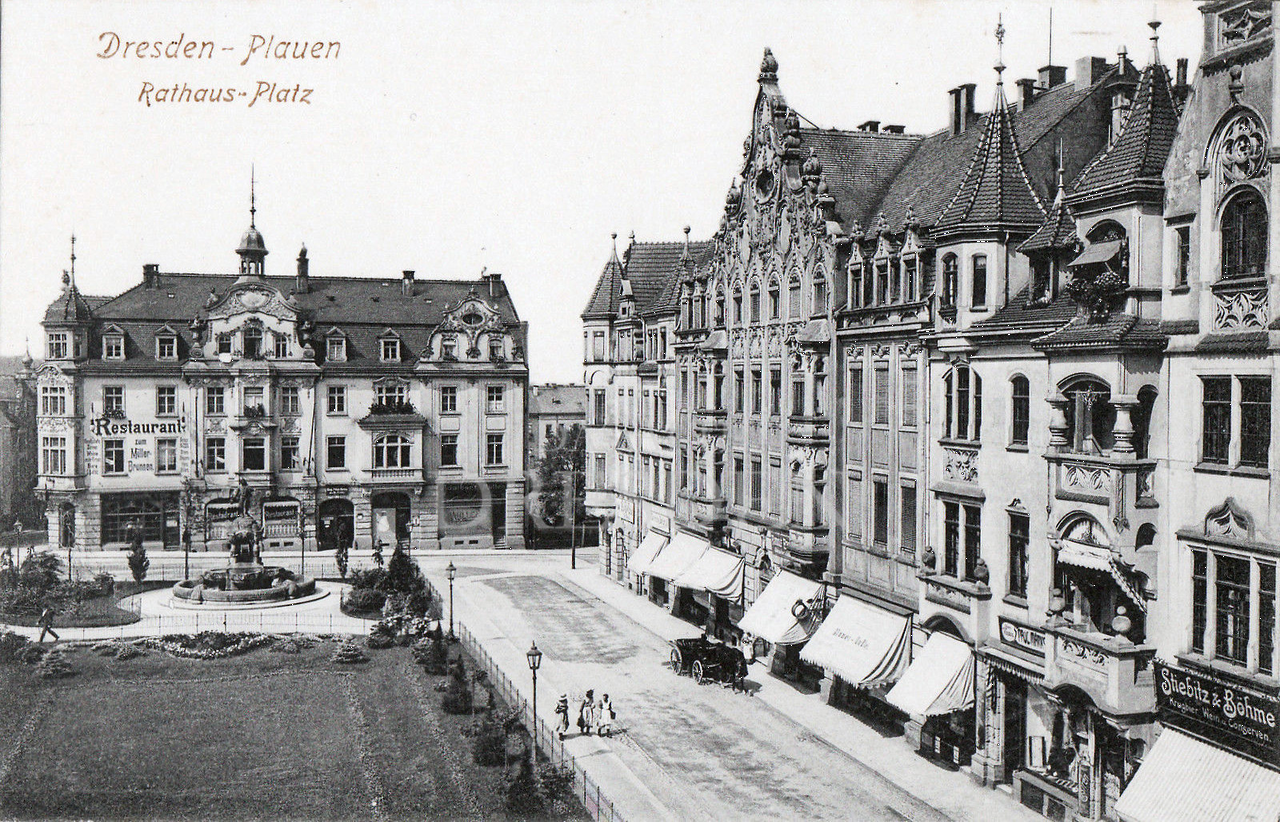 Händler von Krugbier, Wein und Konserven am Rathaus-Platz in Plauen (heute F.-C.-Weiskopf-Platz)
