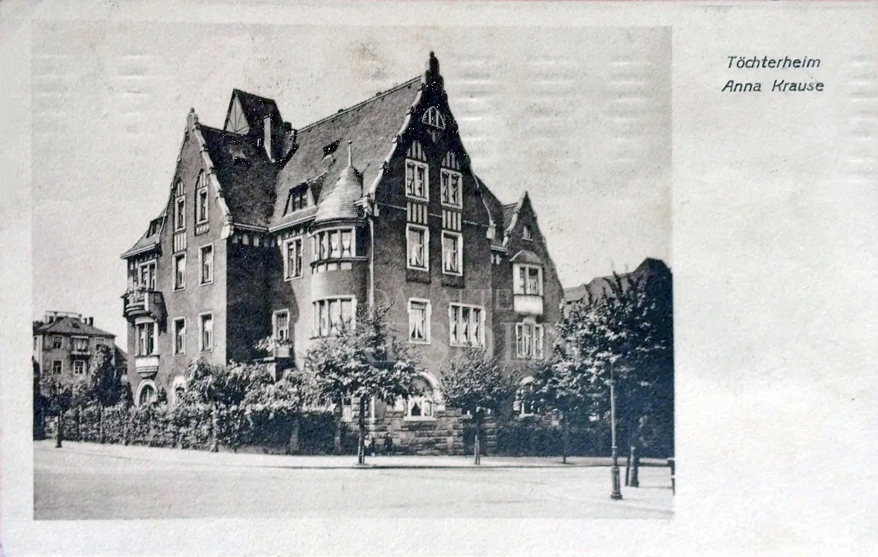 "Fortbildungsanstalt 1. Ranges in Wissenschaft, Sprachen. Gute gesellschaftliche Ausbildung. Praktische und Handelsfächer. Körperausbildung durch Gymnastik, Tanz, Sport. Eigens gebaute Villa mit Garten, fließend Wasser, Zentralheizung."