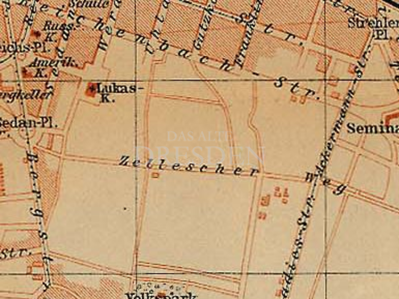 Der Zellesche Weg gehört zu den ältesten Verkehrsverbindungen im Süden der Stadt und bestand bereits im 13. Jahrhundert. Ursprünglich verlief er von der Löbtauer Brücke über den Hahneberg und den Frankenberg bis zum Klosterhof Leubnitz. Da dieser Weg vor allem als Transportweg zwischen Leubnitz und dem Kloster Altzella genutzt wurde, dem der Klosterhof unterstand, erhielt er den Namen Zellescher Weg. An dieser Straße lagen auch die zum Ausgang des Mittelalters untergegangenen Vorwerke Auswik (Nähe Fritz-Förster-Platz) und Boskau (am Beutlerpark).