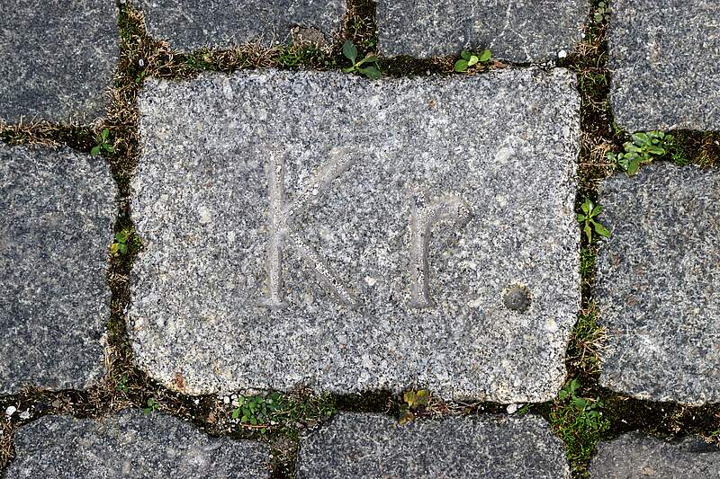 Im Pflaster des Jüdenhofs befindet sich dieser Stein, in den ein "Kr." eingemeißelt ist. An dieser Stelle wurde der Kanzler Dr. Nikolaus Krell am 9. Oktober 1601 hingerichtet, nachdem er am 23. Oktober 1591 verhaftet und auf die Festung Königstein verbracht wurde. Trotz internationalem Protest konnte die Hinrichtung nicht verhindert werden. Das Richtschwert findet sich noch heute in der Rüstkammer Dresden.